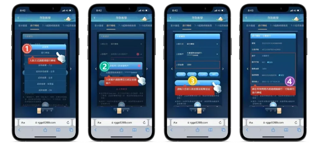 透過台新、國泰等指定銀行進行轉帳,資金直接入帳至你嘅實發體育戶口。存款金額約 HK$1,000~HK$200,000,到帳穩定,適合大額娛樂城儲值。